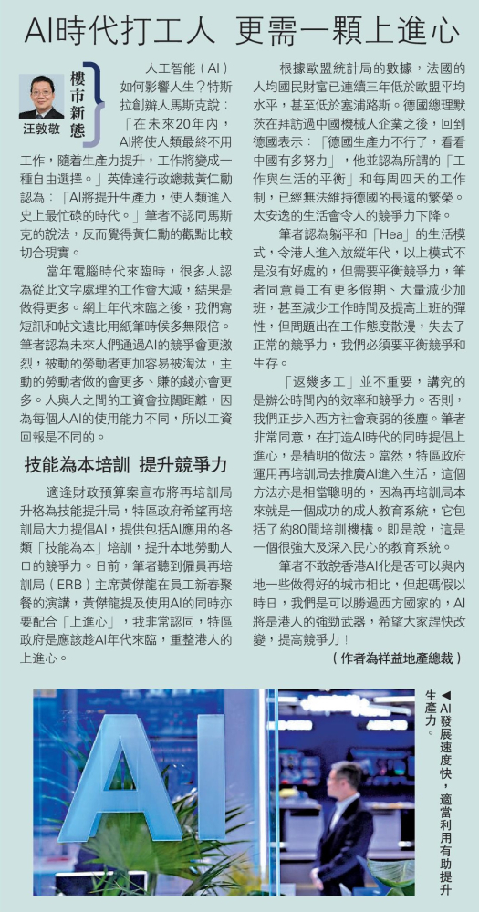 「樓市新態」- AI時代打工人 更需一顆上進心